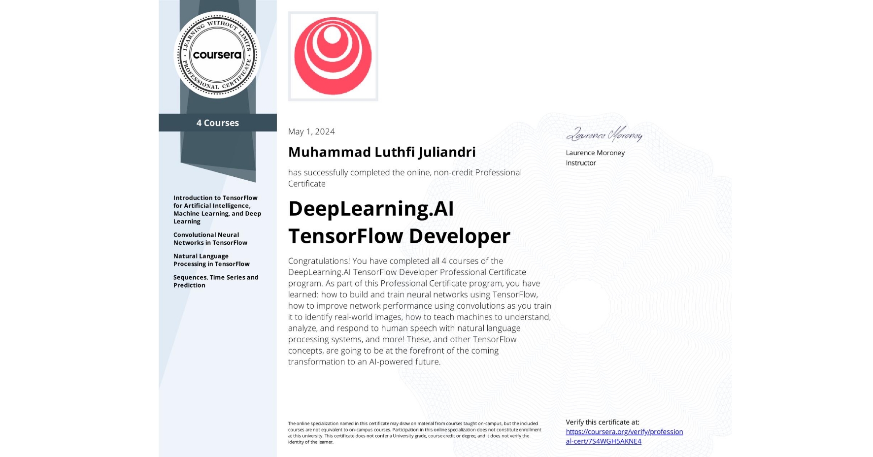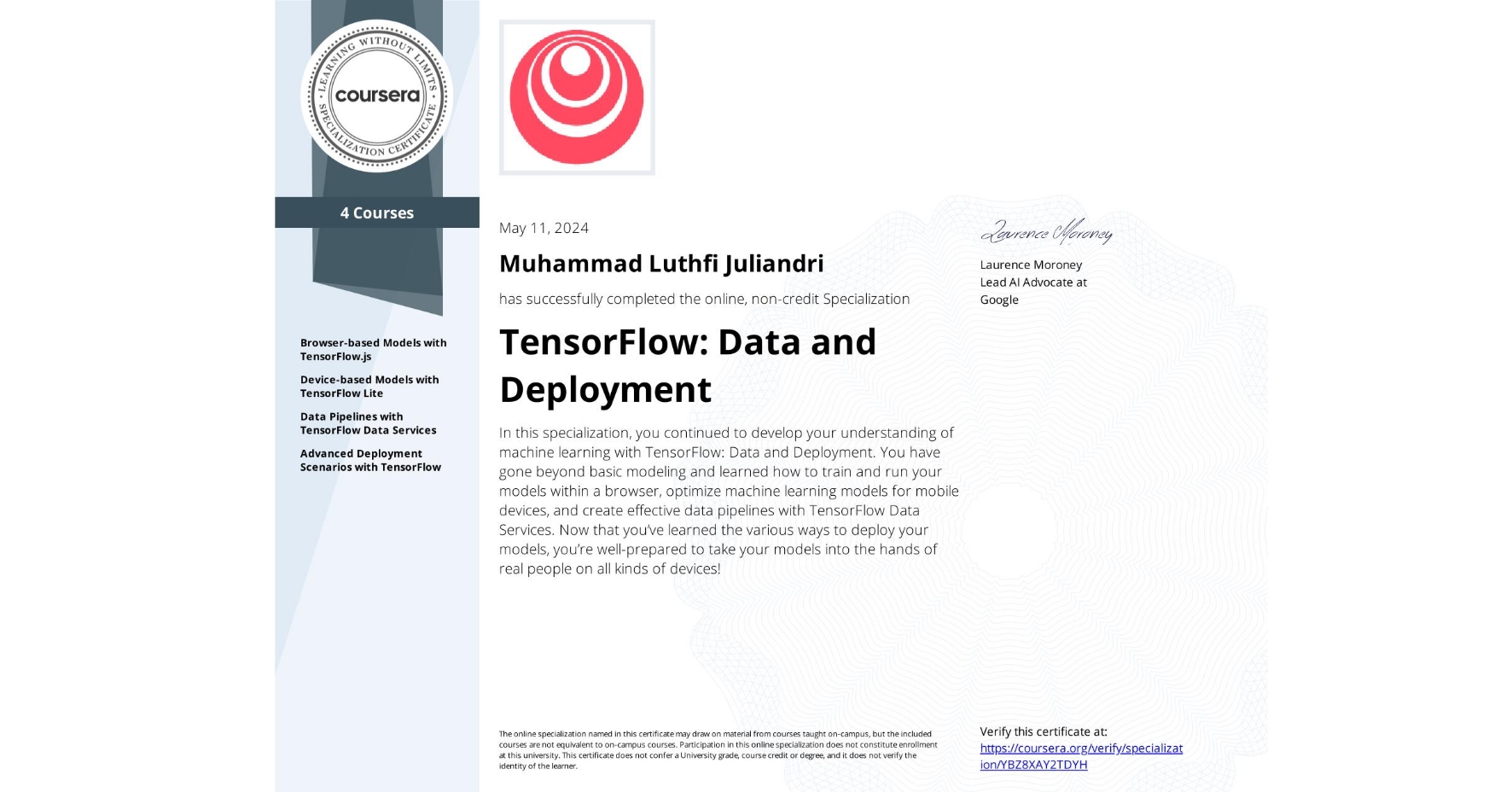 Developed ML solutions through capstone projects and hands-on training using Python, TensorFlow, and data pipelines.